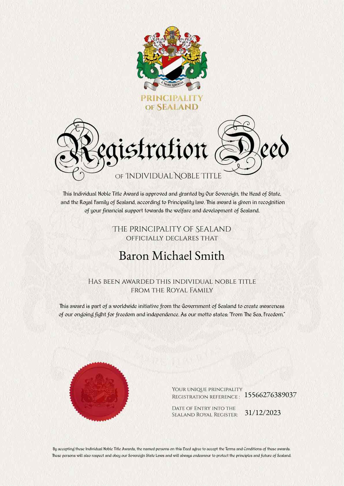Титул Барона или Баронессы Sealand (Англия) (только цифровая *PDF версия)
