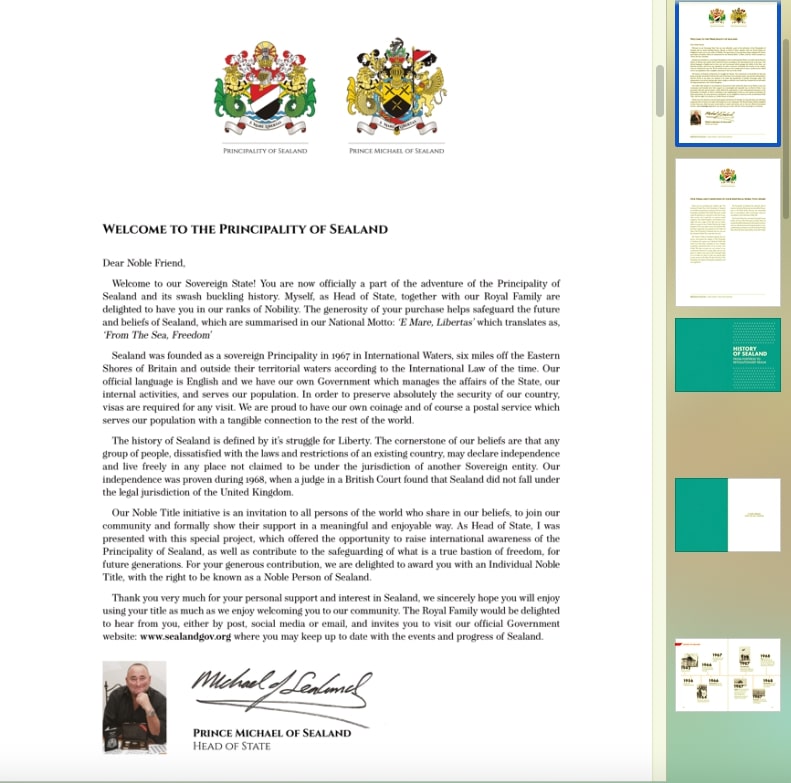 Титул Барона или Баронессы Sealand (Англия) (только цифровая *PDF версия)