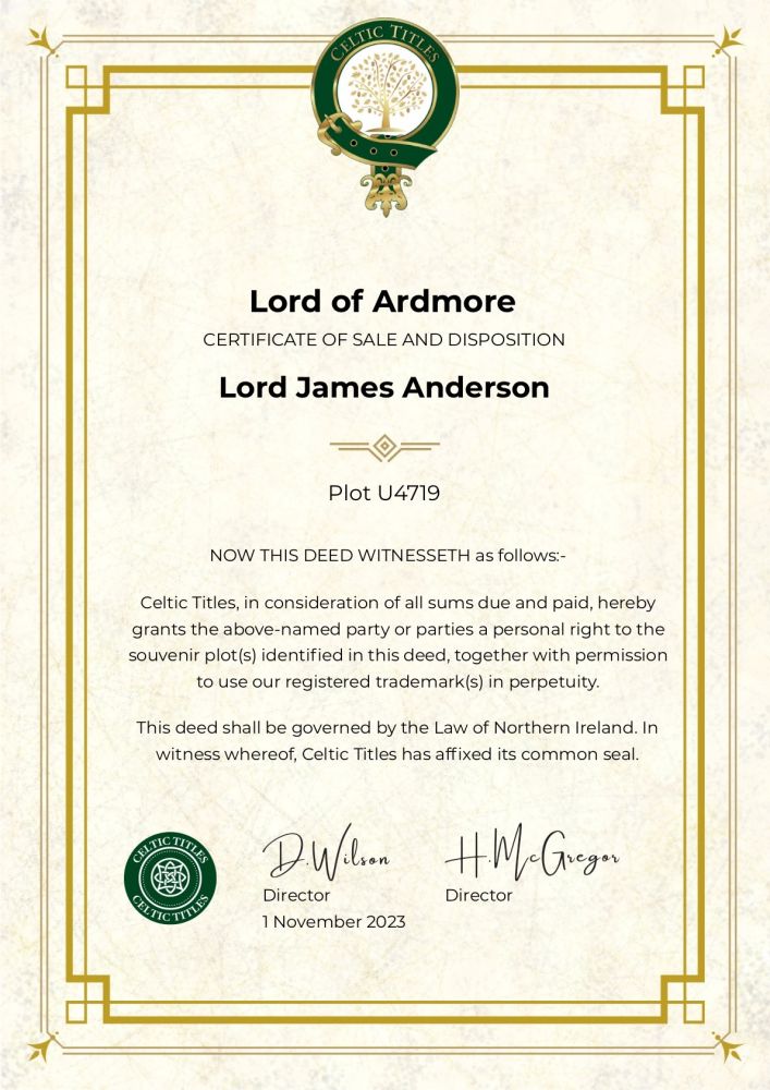 Титул Лорда или Леди и 1 квадратный фут земли в Ирландии (Ardmore) (только цифровая *PDF версия)