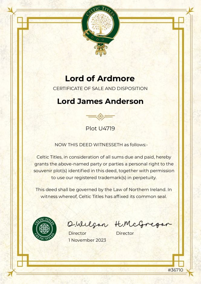 Титул Лорда или Леди и 1 квадратный фут земли в Ирландии (Ardmore) (только цифровая *PDF версия)