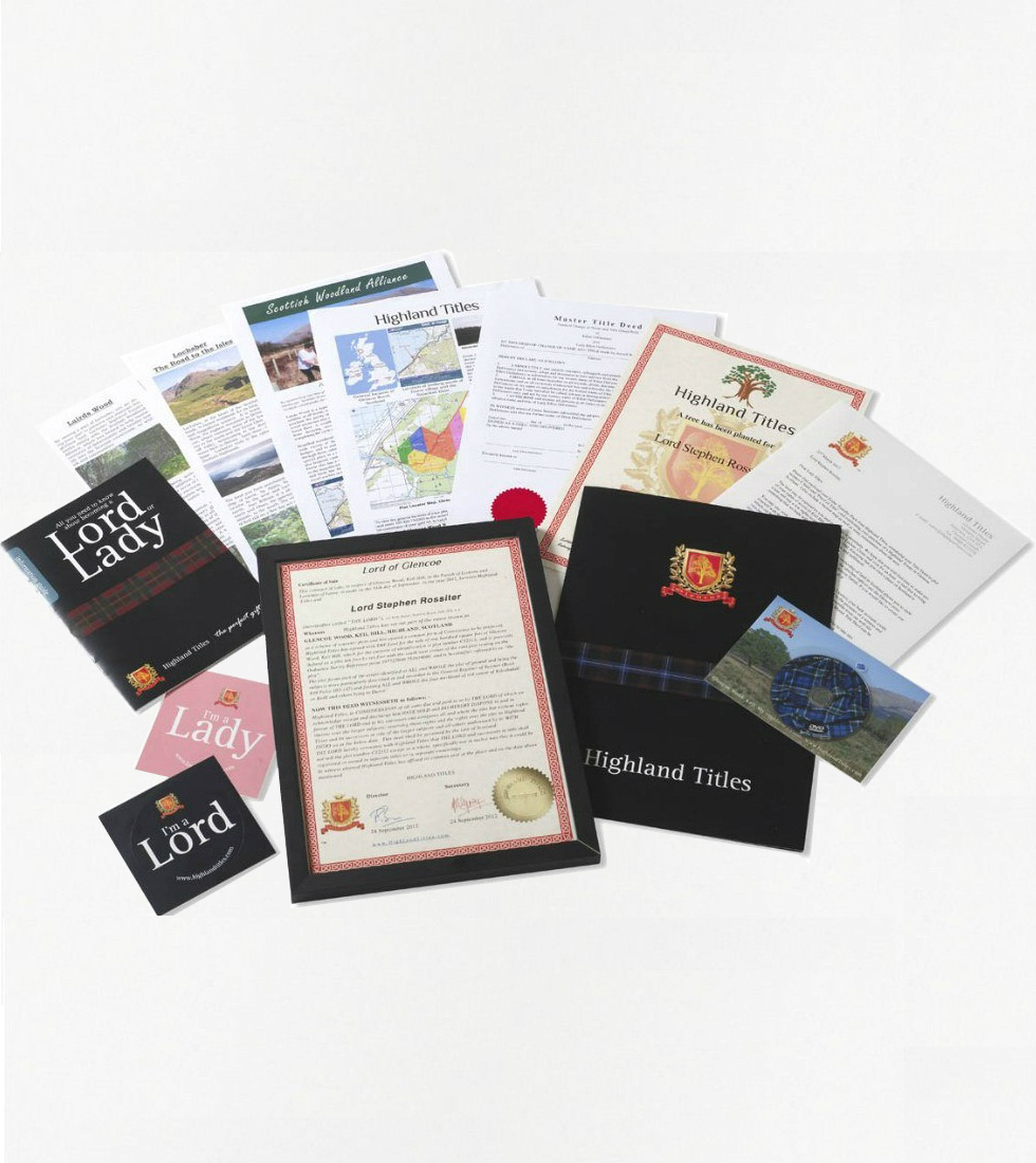 Приобретая 2 титула Лорда или Леди и 200 квадратных футов земли в Шотландии Вы получаете: