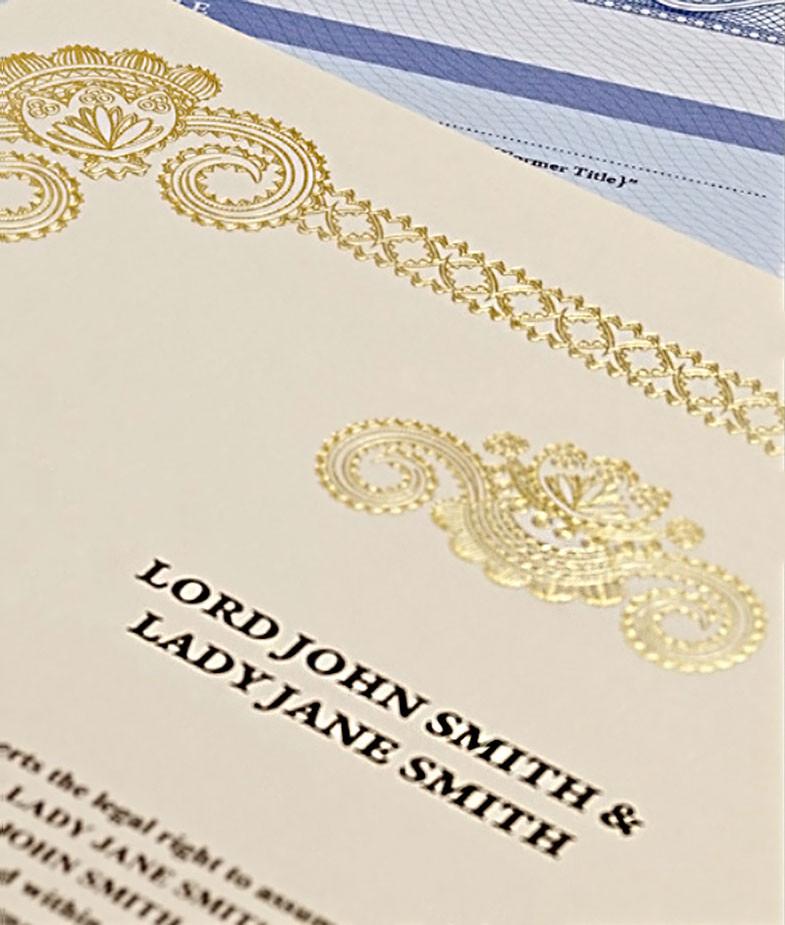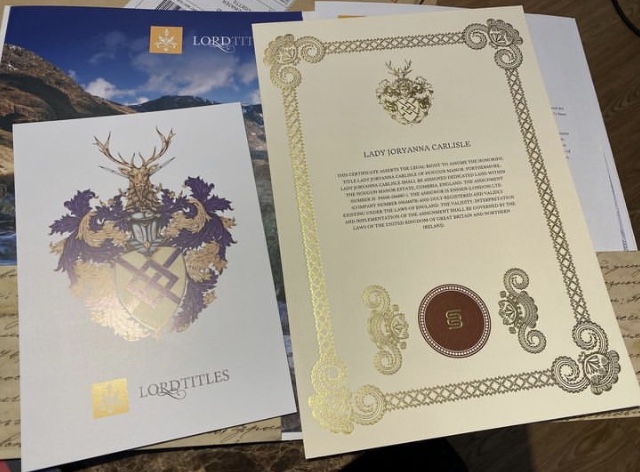 • Юридически оформленные документы (О присвоении Вам 2 титулов Лорд или Леди и права обладания землей).