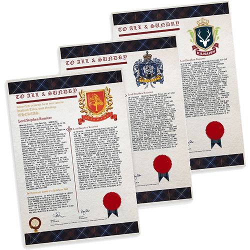 2 Титула Лорда или Леди и 10 квадратных футов земельного надела в Шотландии и Вы официально можете носить титул Лорда или Леди и иметь в личном распоряжении земельный надел на территории Шотландии, который сможете беспрепятственно посещать в любое время. Это будет необычный подарок на любой случай.