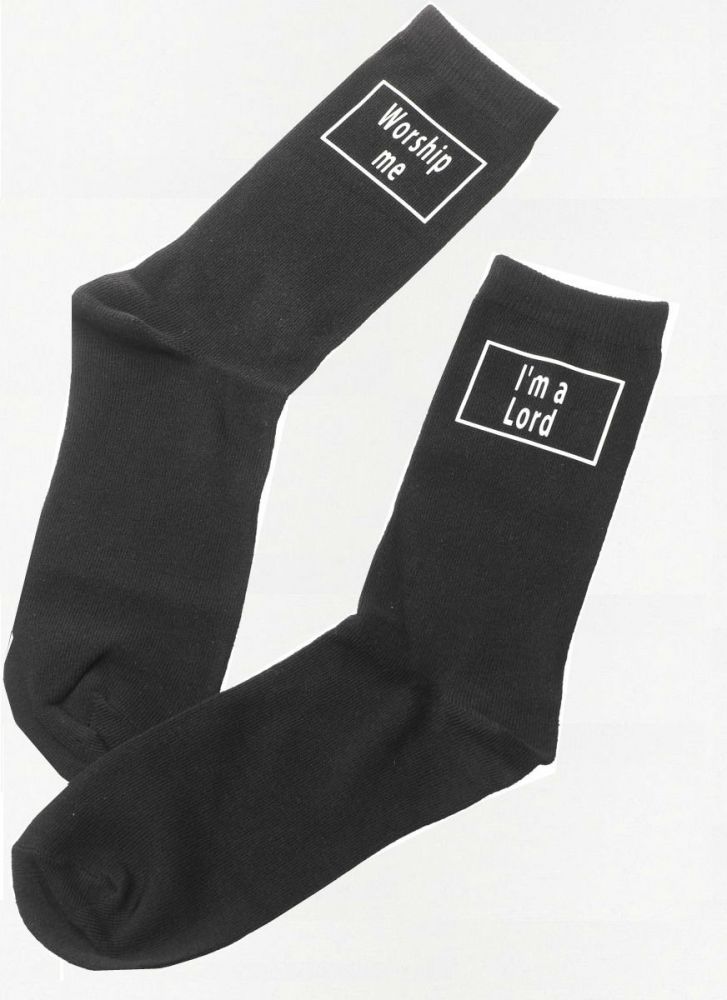 Носки с надписью (в переводе): "Я лорд", "Я леди" или "Я лэирд" с одной стороны и "Поклоняйтесь мне" с другой, будут очень забавным подарком для любого.