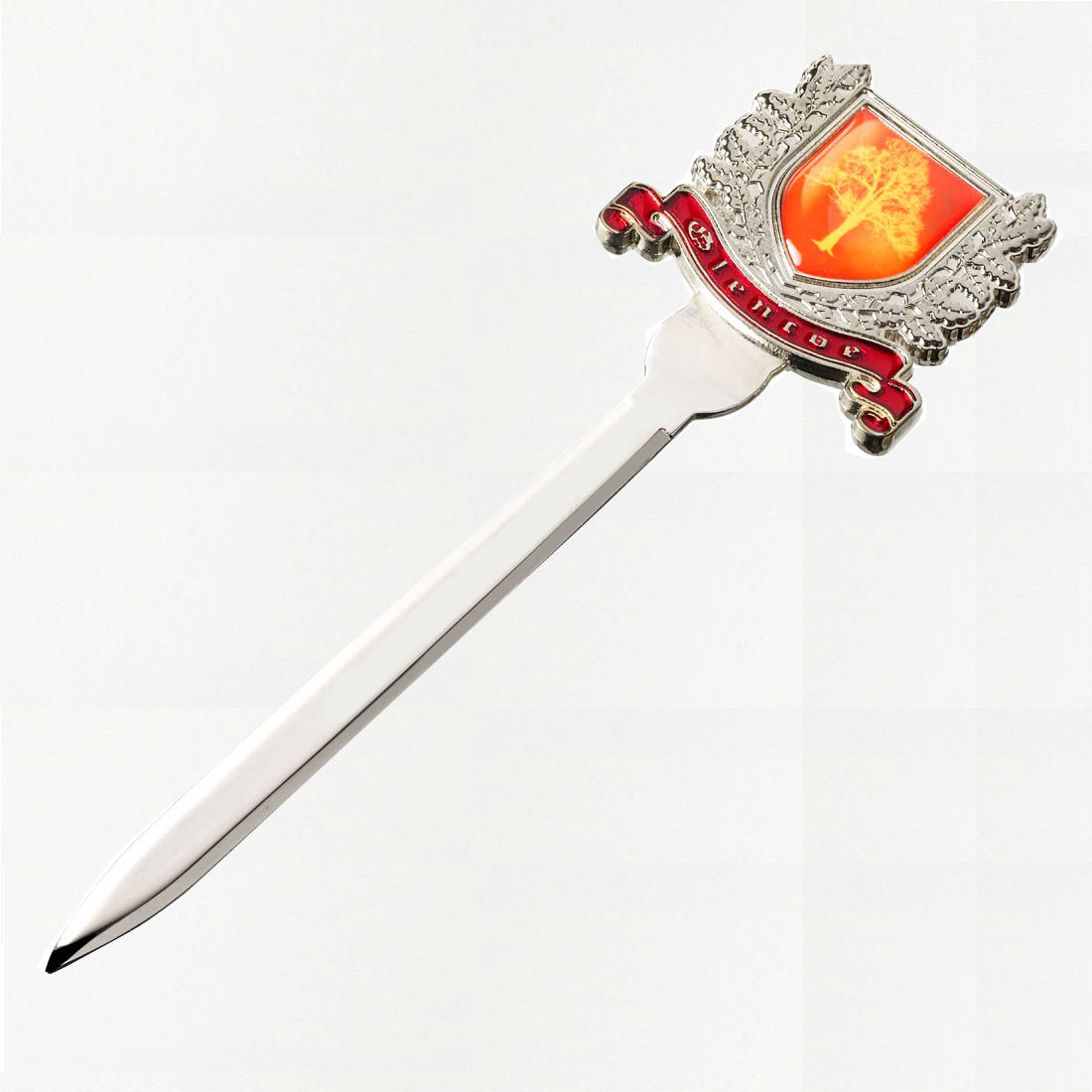 Элегантный нож из ювелирной стали для вскрытия конвертов с гербом Glencoe на макушке.